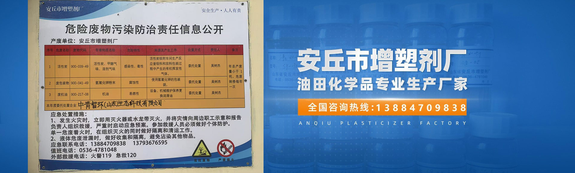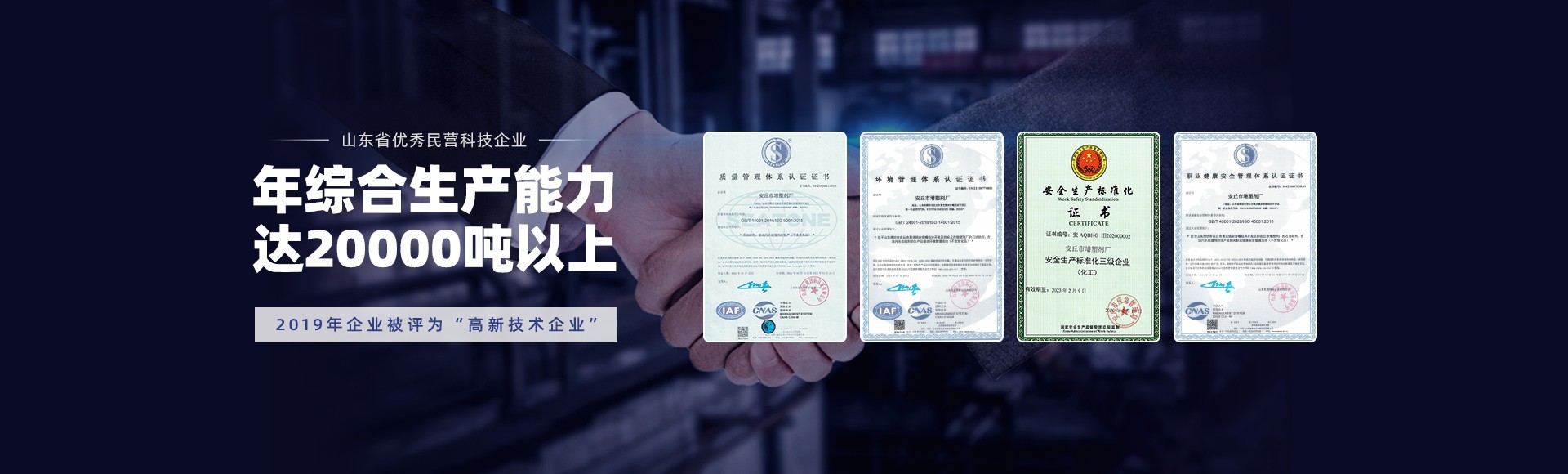 安丘市增塑劑廠始建于1984年,坐落在“全國(guó)重點(diǎn)鎮(zhèn)”安丘市景芝鎮(zhèn),山東省高新技術(shù)企業(yè),“山東制造”品牌認(rèn)定企業(yè)。主要從事油田化學(xué)品的研制、生產(chǎn)與銷售,是破乳劑、瀝青抑制劑等油田化學(xué)品專業(yè)生產(chǎn)廠家。公司先后與中國(guó)石油大學(xué)、山東理工大學(xué)和濱州學(xué)院合作,建立了“油田化學(xué)聯(lián)合研究所”、“水處理聯(lián)合研究所”、“長(zhǎng)期教學(xué)基地”和“大學(xué)生創(chuàng)新創(chuàng)業(yè)實(shí)踐基地”。公司已通過(guò)ISO9001質(zhì)量體系認(rèn)證、ISO14001環(huán)境管理體系認(rèn)證和ISO45001職業(yè)健康安全管理體系認(rèn)證,取得“安全生產(chǎn)標(biāo)準(zhǔn)化證書”。公司配套產(chǎn)品生產(chǎn)線10條,年綜合生產(chǎn)能力20000噸以上。